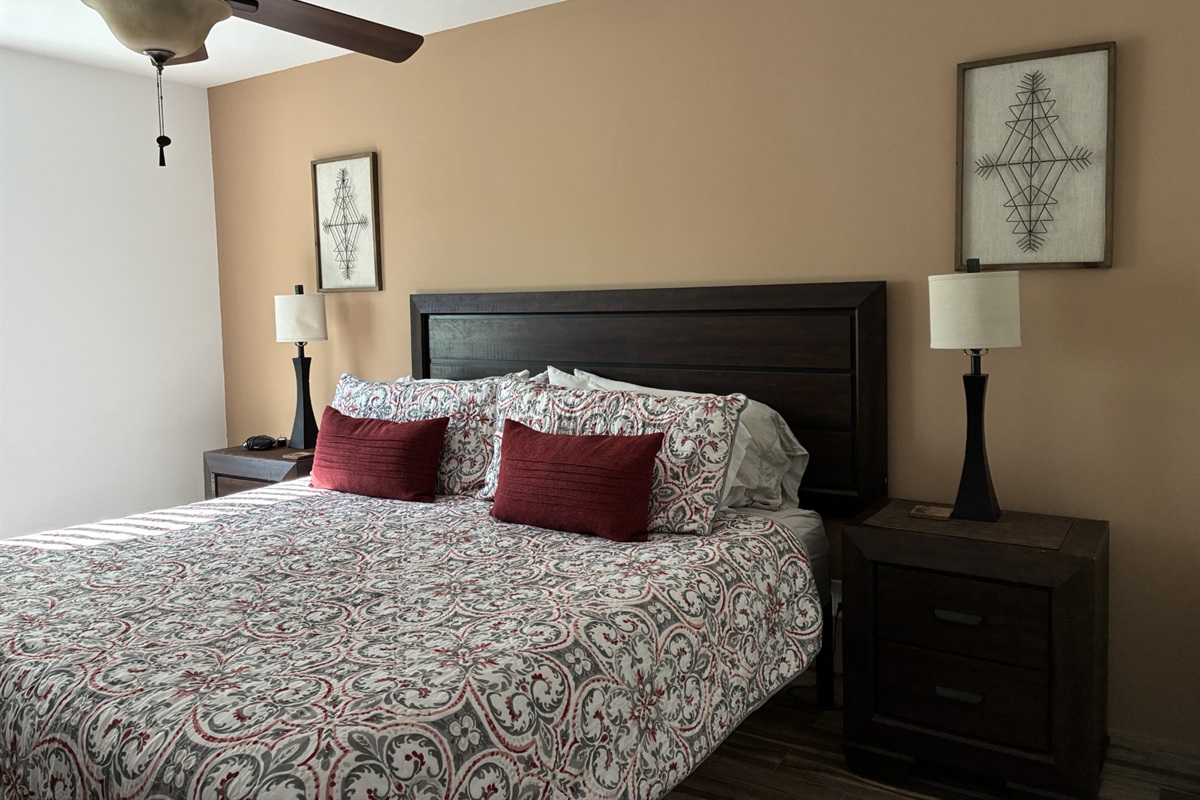2 Bedrooms • 1 Bathroom 1 Bath • Sleeps 1-4State Tax #21272215 This is a smoke free property. Convenient location, near midtown Tucson. Casita F (830sf) is part of a 15 unit apartment complex where all units are situated around a pool. It has a fenced in yard for privacy and carefully chosen furnishings for your comfort and enjoyment. Both bedrooms have king size beds with linens and coordinated decor, the living room has leather furniture, a flat screen tv, and the kitchen is fully stocked with cooking and dining utensils. A washer and dryer are located in the casita as well. The property is centrally located to all of Tucson's tourist attractions, the University of Arizona and area hospitals. We do provide free secure parking in our gated parking lot for one car per casita. All parking is in assigned parking spaces. Traveling with a second vehicle, they are able to park on the street outside the complex, or if available we do have a few additional parking spaces for rent at $10 per night extra. Dogs up to 40 pounds allowed provided they are not a 'pit bull or pit bull mix', do not bark, and are not left in the unit alone unless crated. There is a limit of 2 dogs per unit. NO OTHER TYPES OF PETS.